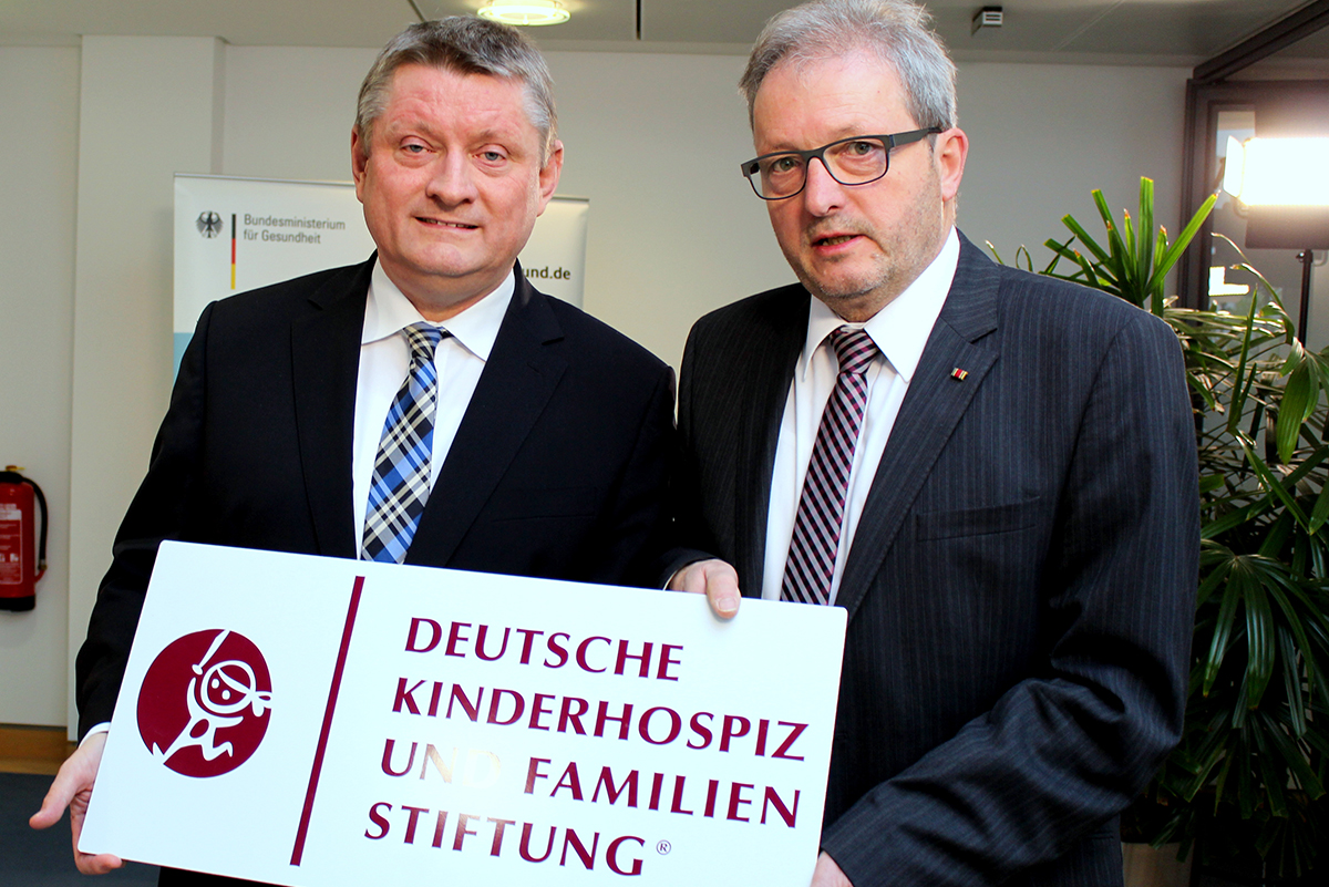17. Januar 2016 Der Bundesminister für Gesundheit Hermann Gröhe (CDU) ließ sich bei einem persönlichen Termin im Bundesministerium für Gesundheit über die Arbeit der Deutschen Kinderhospiz- und Familienstiftung (DKFS) informieren. Unser Stiftungsvorstand Klaus-Dieter Heber nahm den Termin wahr. Neben Informationen über die Stiftung wurde auch über die aktuelle Lage der Finanzierung der Kinderhospizarbeit in Deutschland lang gesprochen und sich rege ausgetauscht.